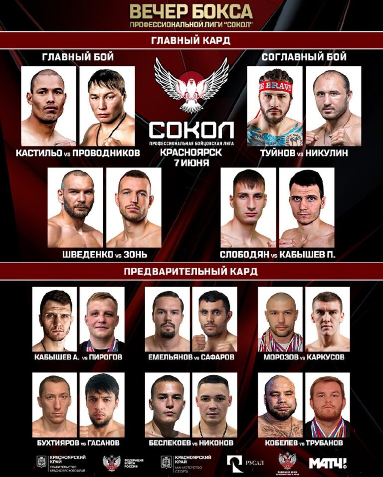 В главном событии вечера состоится возвращение на профессиональный ринг легендарного боксера Руслана Проводникова. Его соперником станет Хосе Луис Кастильо. Это будет реванш. В 2014-м году Проводников победил мексиканца техническим нокаутом.