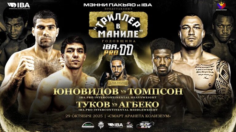 Обладатель временного титула чемпиона мира по версии WBA в бриджервейте Георгий Юновидов (11-1, 7 КО) получил нового соперника на бой 29 октября в Маниле (Филиппины) на турнире IBA.PRO 11. Вместо первоначально планируемого американца Джона Кантрелла (15-0, 14 КО) против Юновидова выйдет южноафриканец Крис Томпсон (16-6-1, 9 КО).