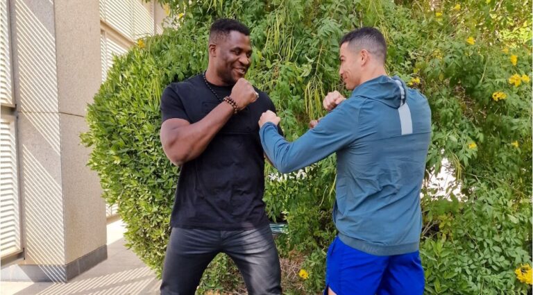 Бывший чемпион UFC в тяжелом весе Фрэнсис Нганну посетил саудовский Эр-Рияд и встретился со звездным португальским форвардом Криштиану Роналду. Спортсмены пообщались и провели шуточную дуэль взглядов.