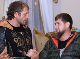 Емель­янен­ко по­дарил Рам­за­ну Ка­дыро­ву по­яс чем­пи­она РЕН ТВ