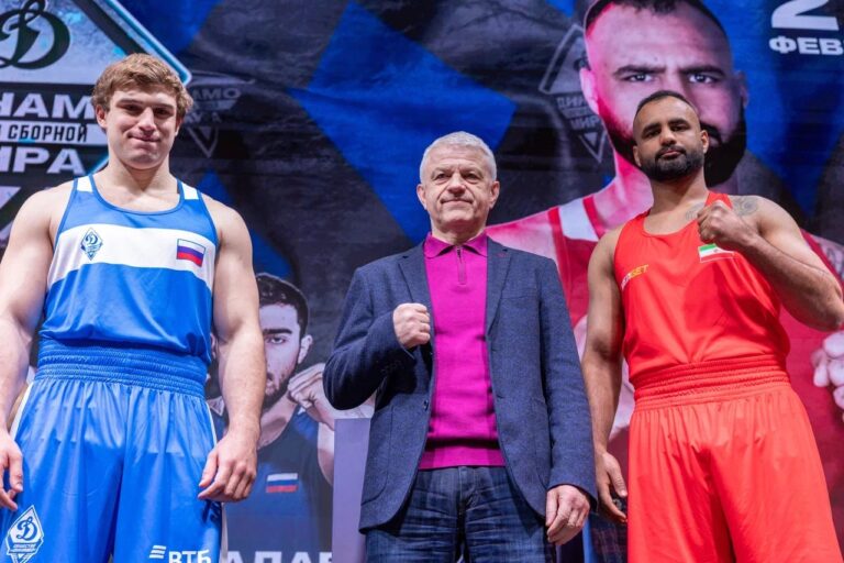 23 февраля, на «ВТБ Арене» в Москве пройдёт Международная матчевая встреча по боксу между сборной «Динамо» и сборной мира. Соревнования пройдут в пяти весовых категориях, а бои будут состоять из трёх раундов по три минуты. А накануне прошла официальная процедура взвешивания.