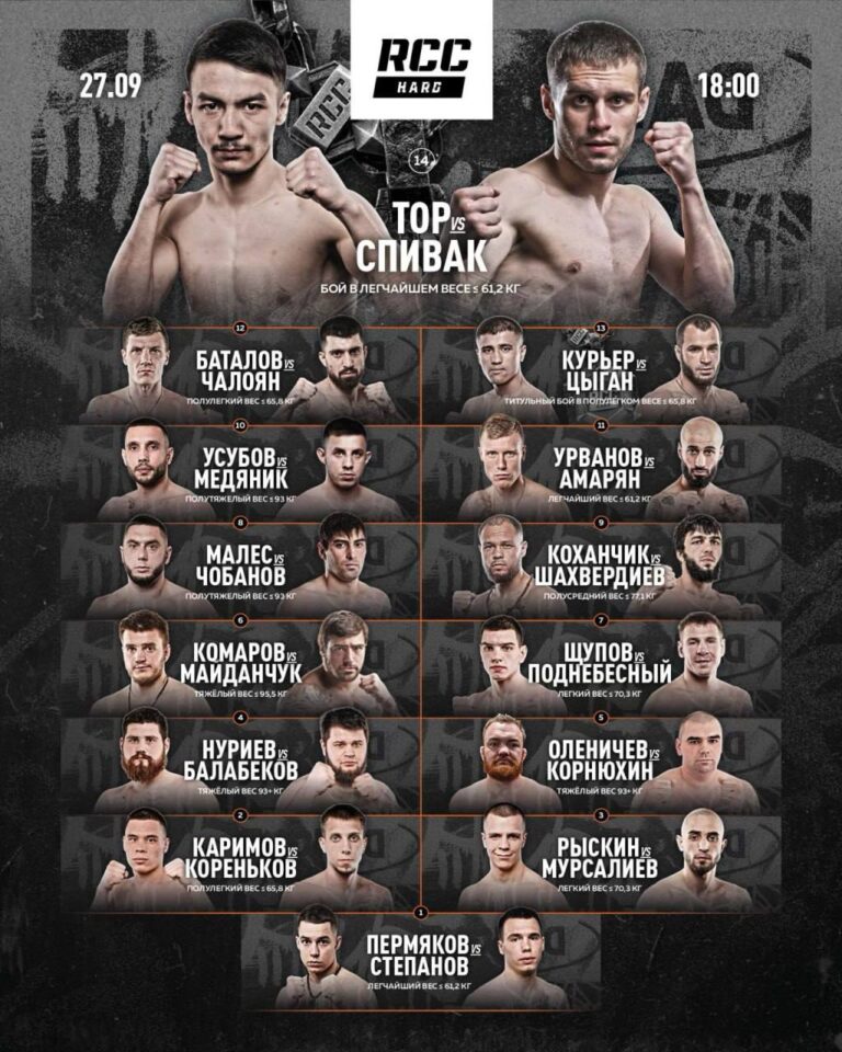 - Шохрух Джиянов победил Андрея Чеботарева техническим нокаутом (раунд 3) и остался чемпионом RCC HARD в полулегком весе