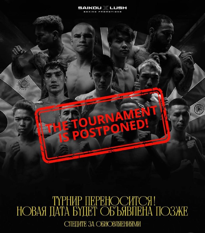 Пресс-служба промоутерской компании Saikou Lush Boxing Promotions объявила на своей странице в социальных сетях о том, что три подряд боксёрских вечера, которые были запланированы с 17 по 19 апреля в Бишкеке (Кыргызстан) будут перенесены на новую дату, которая будет объявлена позднее.